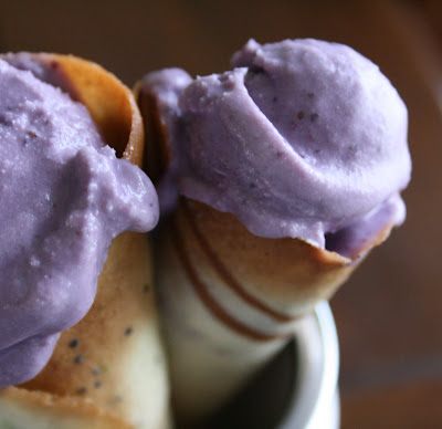 Anyway, this ice cream was super easy and really very, very good. I thought it would be tougher w/o the ice cream maker but it almost seemed easier. I think I may use this condensed milk for my ice cream more often, it gives it a good creamy-ness that isn't too thick. I also like this recipe because it can be very versatile as you can substitute any fruit in place of my blueberries. And any liquor** you want, Perhaps Chambord or Grand Marinier?
